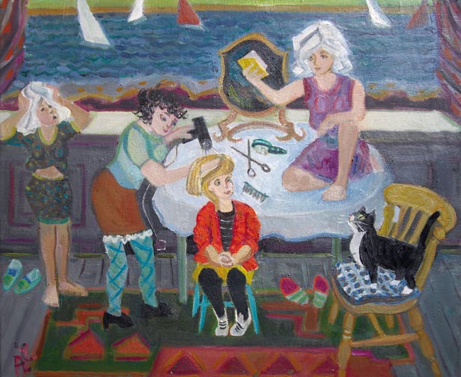 Hair Drying in Kitchen