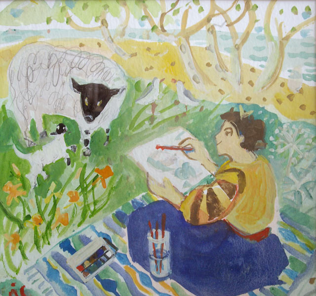 Madeleine Painting a Sheep, West Highlands