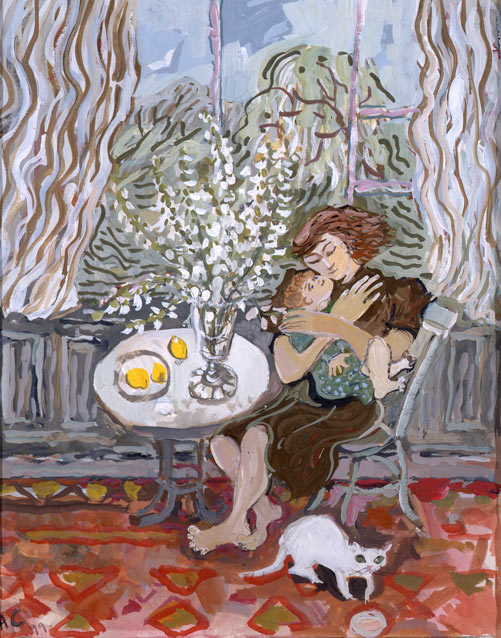 Girl with baby and foxgloves