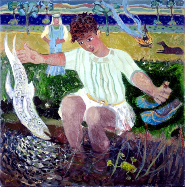 Tobias catching the fish