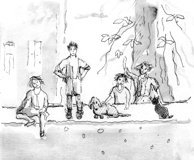 Vicarage children on the garden wall