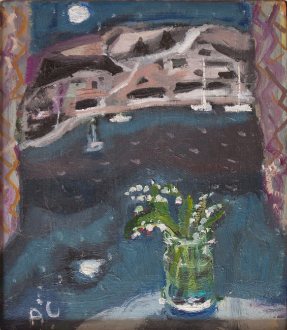 Inverie Bay from window with lily of the valley